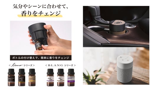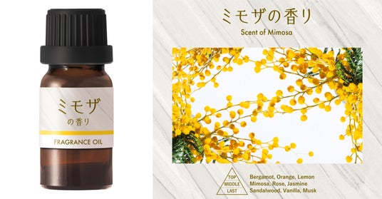 本製品は、気分に合わせてフレグランスオイルを交換して楽しむ「噴霧式フレグランスディフューザー」の特長を活かし、“香りから季節の雰囲気を感じる”というコンセプトで誕生した「季節の香り」の第4弾です。今回は、春の訪れをつげる花とされるミモザや、ほっと一息つける爽やかなグリーンティーをイメージした、春らしい2つの香りを展開いたします。クルマやお部屋で、また「ミモザの日」にちなんで感謝の気持ちを伝える贈り物として、あたたかな春の香りをお届します。