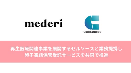 オンラインピル診療サービス『mederi Pill(メデリピル)』を展開するmederi株式会社(本社:東京都目黒区、代表取締役:坂梨亜里咲、以下当社)は、2024年3月5日、再生医療関連事業のセルソース株式会社(本社:東京都渋谷区、代表取締役社長CEO:澤田貴司、以下セルソース)が提供する、卵子凍結保管受託サービス『卵子凍結あんしんバンク(TM)』( https://ranshi-touketsu.jp/ )を共同で推進することを目的に、業務提携契約を締結したことをお知らせいたします。