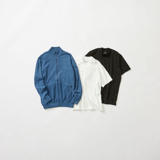 左からニットブルゾン、ポロシャツ、モックネックシャツ