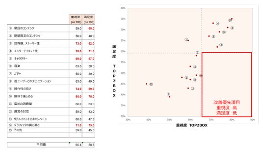 Q4-15.ソシャゲをプレイする際の重視点 (5段階尺度のTOP2BOX(非常に重要である+やや重要である)回答のまとめ表)