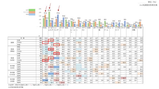 アメリカは「パズル」が17%で、男性より女性が多かった(女性30% > 男性4%)。