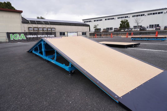 スケートボードやBMX等のスラッピー、バンクバンク等6個の簡易セクションをしらさぎ運動公園内第2駐車場内に設置しました。