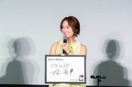 浅野は『テレビ番組の「世界の果てまでイッテQ!」で、何事も全力で取り組まれている姿を拝見して、ぜひ谷まりあさんにお願いしたいと想い、今回の起用にいたりました。』と説明し、今後公式アンバサダーとしての活躍に期待するだけでなく、新商品発売をきっかけにファンデーションカテゴリーにおいてのシェア率NO.1を目指すことを宣言しました。