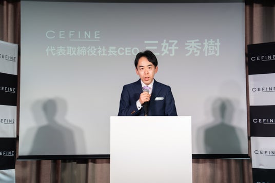 午後3時ー。立見席が出るほどに、多くのメディアおよび関係者が集まった会場に、セフィーヌの代表取締役社長 三好が登壇し、幕を開けた「新商品発表会」。