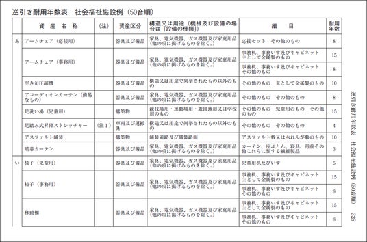 ○逆引き耐用年数表 社会福祉施設例(50音順)