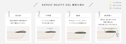 画像の説明: 特許施術「リピートビューティジェル」施術の流れ