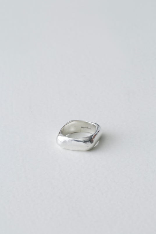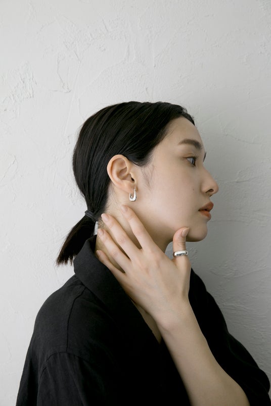水の流れによって削られ、丸くなっていく石の経年変化を表現したシリーズで、シンプルながらもアイテムひとつでコーディネートが決まるようなモード感があります。毎日つけても飽きのこないデザインでゴールドとシルバーの組み合わせコーデがしやすいのも「Flow Square シリーズ」の魅力です。