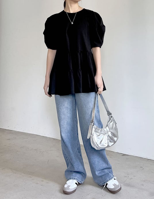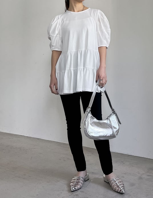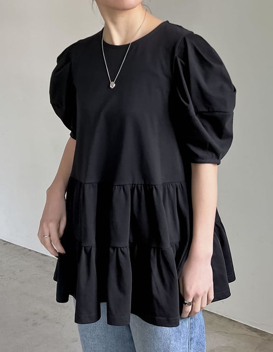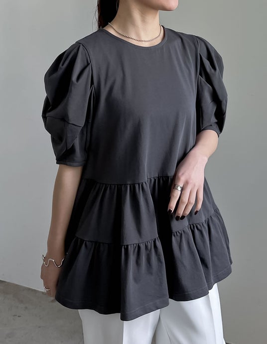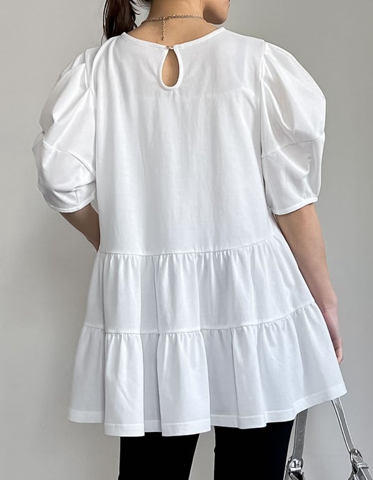 商品名:[接触冷感]パフスリーブティアードカットソーチュニック