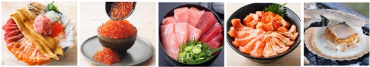 和洋中のメニューが勢ぞろいマグロ、サーモン、カニ、イクラ、カキ、ホタテなどの旬で新鮮な魚介が大集合。海鮮丼や漁師飯、郷土料理、鍋料理、海鮮ラーメン、海鮮パエリアなど和洋中のメニューが勢ぞろい。
