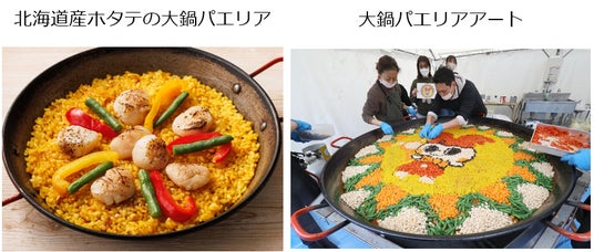 ◎北海道産ホタテのパエリアを巨大鍋で最大200人前調理! 具材で描くパエリアアートも披露!