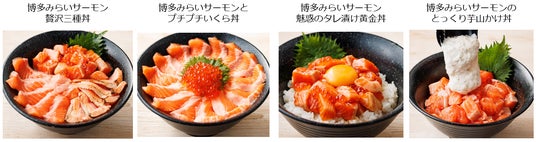 ◎未来を照らすイケてる「博多みらいサーモン」がデビュー!贅沢三種丼など、4種の海鮮丼を用意しました!