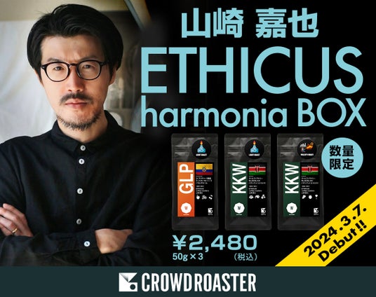 ソルフレア株式会社(本社:東京都千代田区、代表取締役:関場 治朗)が運営する、最先端のコーヒーアプリ「CROWD ROASTER」では、ETHICUS 山崎 嘉也さん焙煎の3種のコーヒーの特別な飲み比べセット「ETHICUS harmonia BOX」を発売しました。