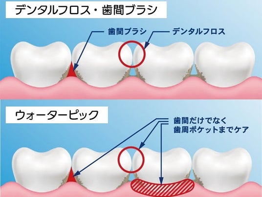 歯間ブラシとフロスの1台2役。さらに「歯周ポケット」の汚れまで除去。