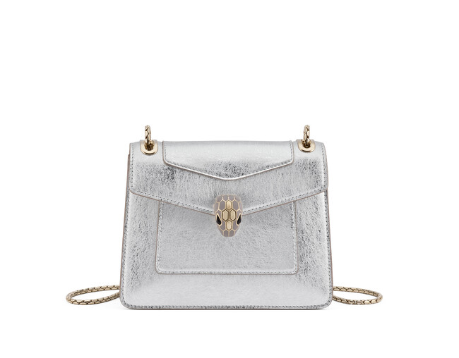 シルバーカラーのストライエイテッドカーフレザーが、夏の活気に満ちた目の覚めるような瞬間を映し出し、よりコンパクトなサイズのセルペンティのトップハンドル 及びショルダーバッグの心を掴む魅力を一新させています。いずれも魅惑的なスネークヘッドのクロージャーを備えており、バッグと色を揃えたエナメルとメタリックカラーのうろこが、このコレクションのシグネチャーとして輝きを放ちます。天然のダイヤモンドに併せ持つ自然な美しさと繊細なインクルージョンを彷彿とさせる独特のテクスチャーが魅力のストライエイテッドカーフレザーは、熟練の技を駆使して作られており、加熱したローラーを使って特殊な箔をレザーに重ね合わせることで、メタリックな輝きを放つ縞模様を生み出しています。厳選された上質なカーフレザーが持つ限りない魅力をブルガリの無限の創造性と卓越したクラフツマンシップによって引き出しました。
