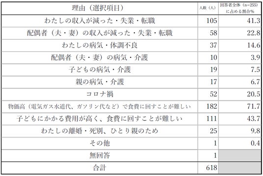 前回は、冬休みに向けての食料支援を行い、その際に実施したアンケートでは、次のような回答がありました。