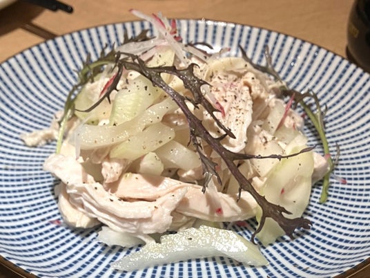 メニュー内容:大山鶏むね肉とセロリのユーグレナ酒粕発酵マヨ添え