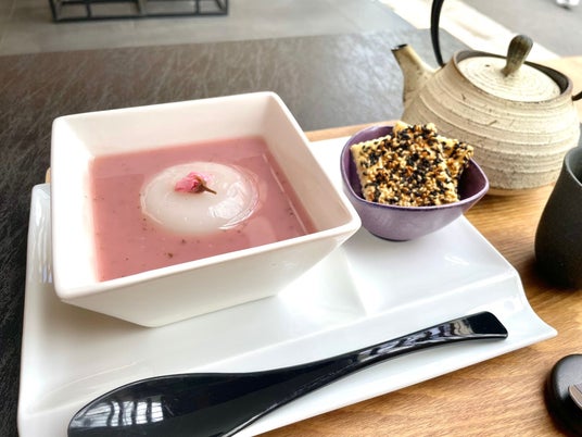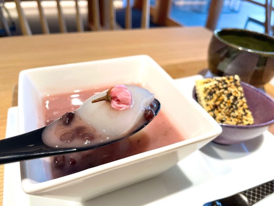 株式会社船橋屋(所在地:東京都江東区、代表取締役:神山恭子)は、2024年3月13日(水)よりBE:SIDE表参道店にて「さくらみずくずもち」を提供いたします。底に自家製小豆を敷き、くず餅乳酸菌入りの桜餡にみずくずもちを浮かべました。