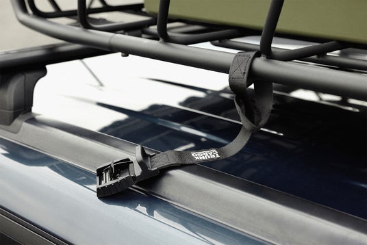 そのため固定ベルトをルーフキャリアに取り付けた後、反対側のカムバックルに結ぶだけで取り付けが完了します。