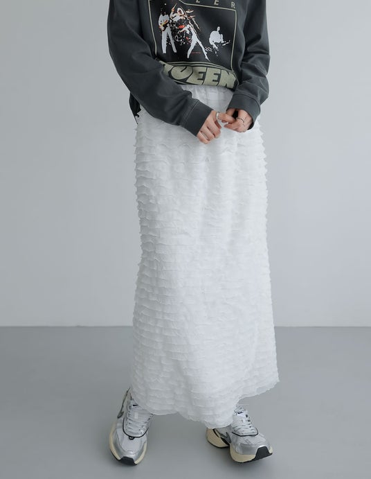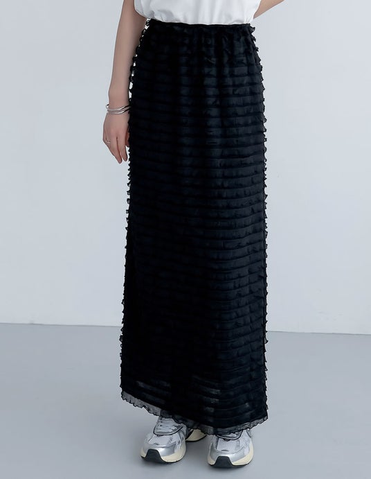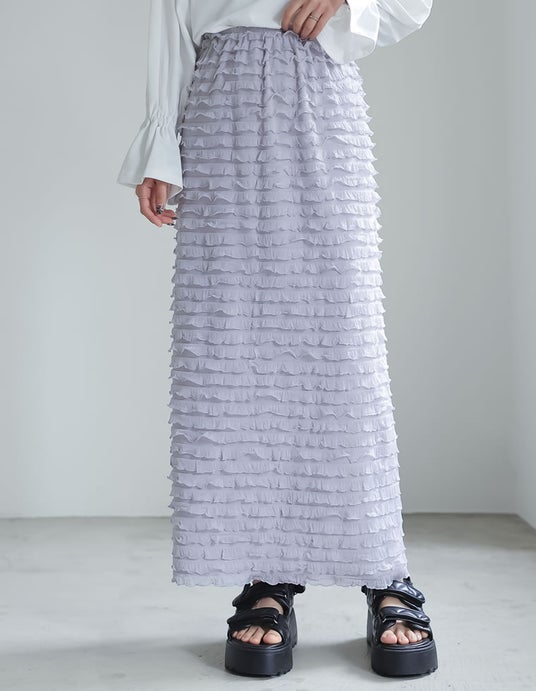 小さめのフリルを全面に施した、シンプルながらも表情豊かなナロースカート。