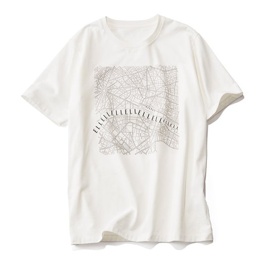 ブルゾンとお揃いのパリの地図柄をのせたお洒落なTシャツ。上質なコットンをほど良いゆとりのサイズ感に仕立て、ヘルシーで女性らしい一着にしました。ジャケットインのアクセントとしても重宝します。