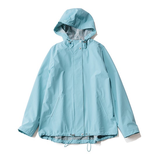 ELLEらしい爽やかなショートブルゾンは、優しいアクアブルーで旬のスポーティーをきれいな印象で楽しめます。裏地にはオリジナルプリントをあしらいデザインのポイントに。フードと裾にはスピンドルを通し、シルエット変化で遊べる一着。