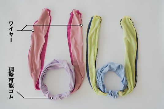 リボン部分にワイヤーを内蔵、後ろのゴムは調整可能となっておりそれぞれの頭に完全フィットしたつけ心地を実現しました。