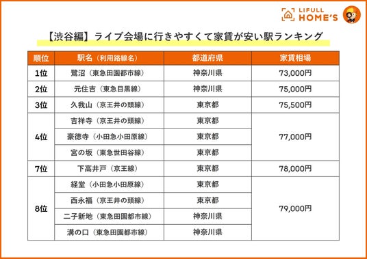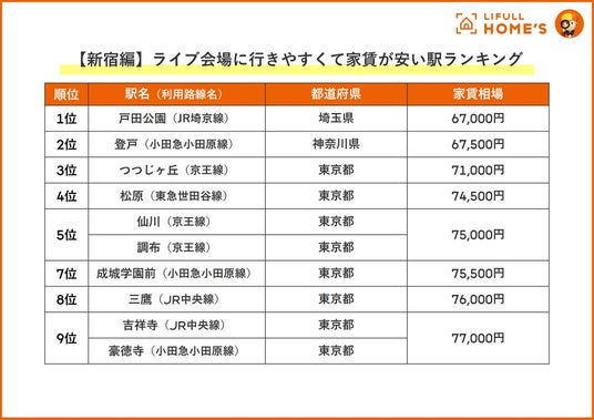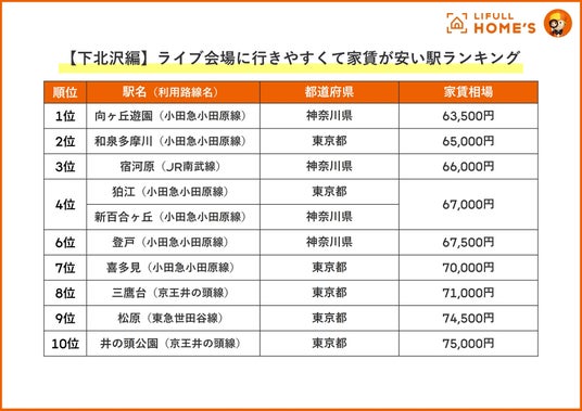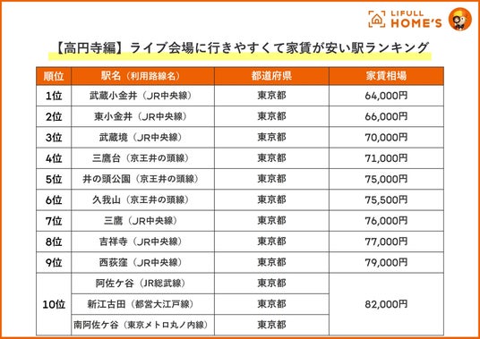 事業を通して社会課題解決に取り組む、株式会社LIFULL(ライフル)(本社:東京都千代田区、代表取締役社長:伊東祐司、東証プライム:2120)が運営する不動産・住宅情報サービス「LIFULL HOME’S(ライフルホームズ)」は、3月19日の「ミュージックの日」に際して、ライブハウスが集まる各エリア、そして武道館・東京ドームの最寄り駅に20分以内にアクセスできる駅をもとに、「ライブ会場に行きやすくて家賃が安い駅ランキング」を発表します。