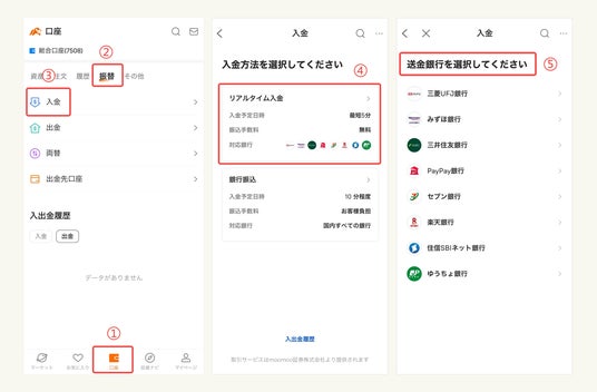 市場は常に変化しており、有望な銘柄の購入の好機には迅速に対応したいものです。そのチャンスを逃さないためにも、是非リアルタイム入金機能をお役立てください。