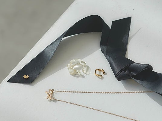 ロングリボンクリップ¥1,980/イヤーカフ¥2,200/ネックレス¥2,200LOOK1可愛いと大人っぽいの間で揺らめくリボンモチーフは1点で主役に。淡水パールが封入されたイヤーカフはクリア素材で抜け感のあるトレンドライクな耳元に。