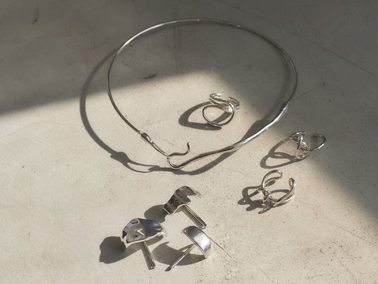 メタルチョーカー¥2,530/ミニカフ¥1,760/リング各¥1,650LOOK2暖かくなり薄着になると重宝したいのがメタルのアクセサリー。シルバーはつけると肌の透明感が増し、かろやかさをもたらします。