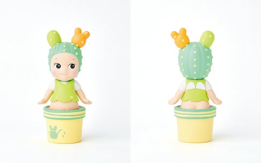 お庭の植木鉢から顔を出すソニーエンジェル。ロビーエンジェルのかたちをしたサボテンにもご注目。
