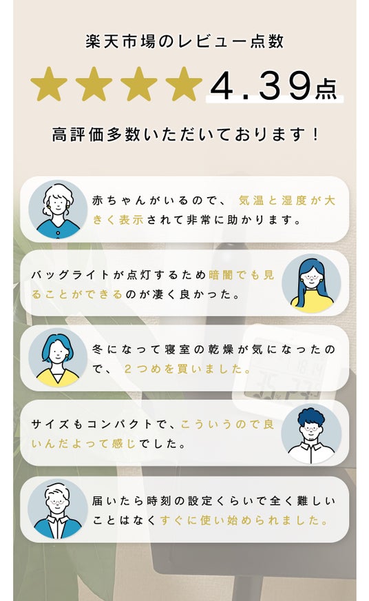 累計販売数50,000個、楽天ランキング3冠 レビュー7,400件の温湿度計が更に進化!/mybest掲載実績(第1位※2024年2月度)