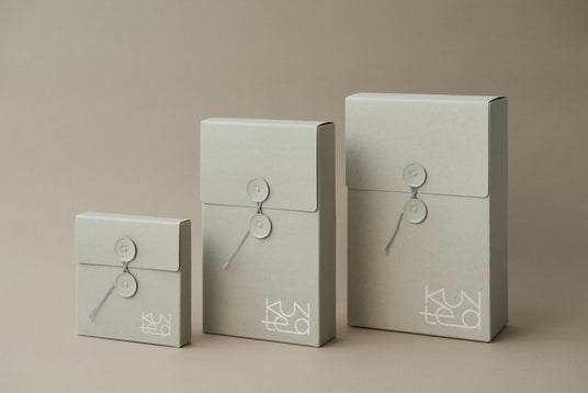 パッケージデザインは、紙の素材にこだわり、軽めのグレーで、燻製のような見えない煙を表現。ミニマルなロゴを配置し、ギフトにふさわしい上質さと、気を遣わせすぎない手軽さの両立を目指しました。また玉紐によって、ギフトを開けるひと手間を楽しみな時間に変換しています。さらに開けたBOXの中には<KUNtea>の世界観を伝えるリーフレット封入するなど細部にまでこだわりました。性別・年齢に限定されない、さまざまな人へお渡しできるギフトBOXです。
