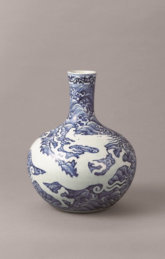 重要文化財《青花龍濤文天球瓶》 中国・明時代 畠山記念館蔵