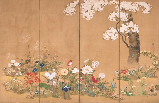 酒井抱一《四季花木図屏風》江戸時代【前期展示】畠山記念館蔵