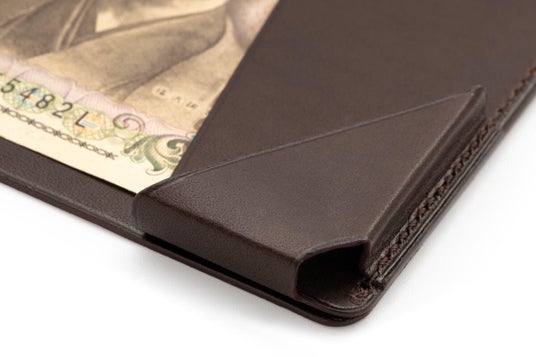 金具やフラップなど、余計なものが何も突出しないので薄いまま、ポケットの中で引っ掛かりがありません。
