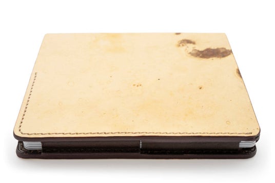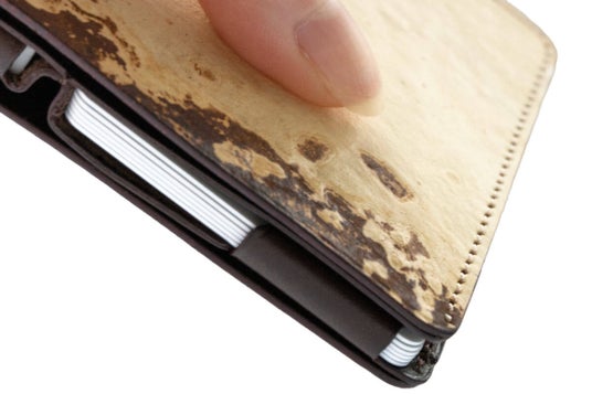 ヴィーガンレザーに、あえて動物由来の革を貼り合わせる例は、ほとんど見られません。