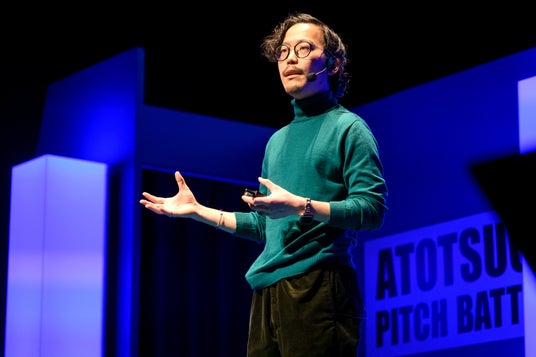 アパレル小売業の3代目アトツギが、3年前にブランドをスタート。(写真:中小企業庁主催のビジネスコンテスト登壇)