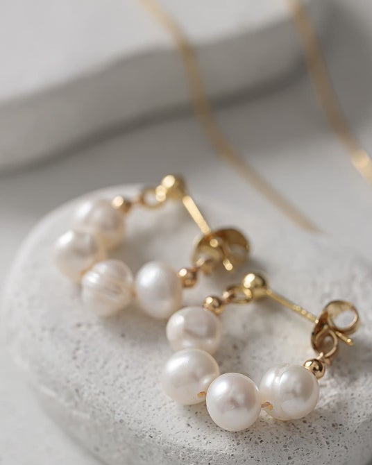 ■商品名:【S925/18K】淡水バロックパール4連フープピアス