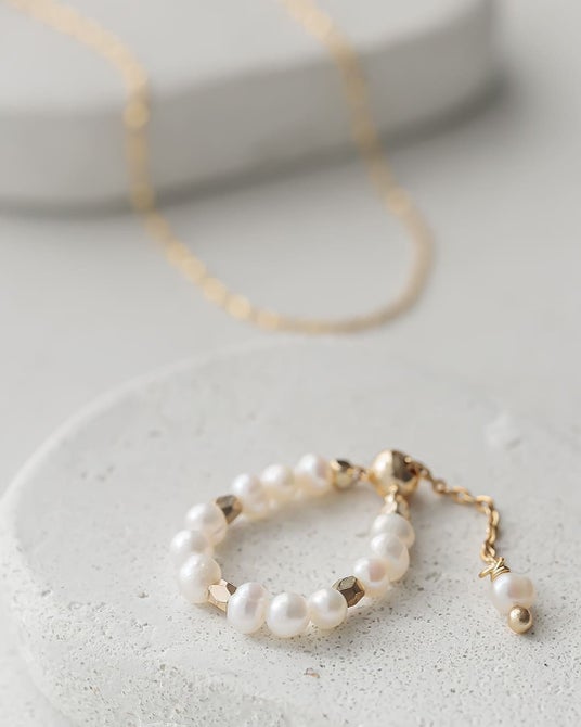 ■商品名:【18K】天然淡水バロックパールチェーンリング