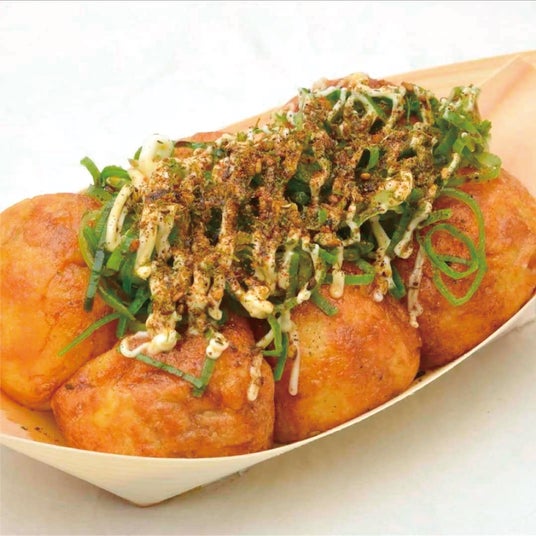 メニュー:京風たこ焼きソース、京風フライドポテト、具沢山鮭おにぎり など