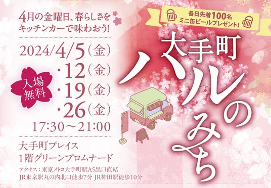 2024年4月5日(金)・12日(金)・19日(金)・26日(金)の4日間、大手町プレイス(東京都千代田区大手町二丁目3番1号から2号)では、大手町エリア・神田エリアの懸け橋となるエリアマネジメント活動(※)の一環として、「大手町ハルのみち」を開催します。