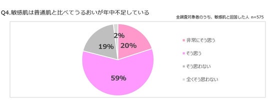 また、敏感肌は普通肌と比べてうるおいが年中不足していると答えた人も79%にものぼることがわかりました。