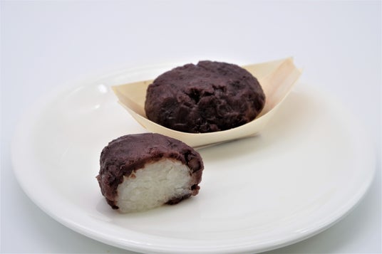 店内で蒸しあげたもち米を粗めにつぶし、甘さ控えめ、銅窯で炊き上げたあんこで包みました。