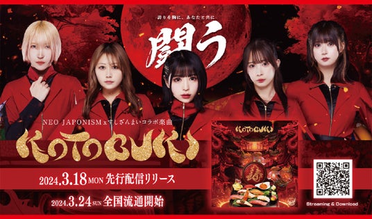 「NEO JAPONISM × すしざんまい」コラボ楽曲『KOTOBUKI』の2024年3月18日(月)先行配信、3月24日(日)全国流通開始に合わせ、3月18日(月)~30日(日)の14日間、「すしざんまい」限定20店舗にて、2つの特典が付いたオリジナルメニュー販売開始!