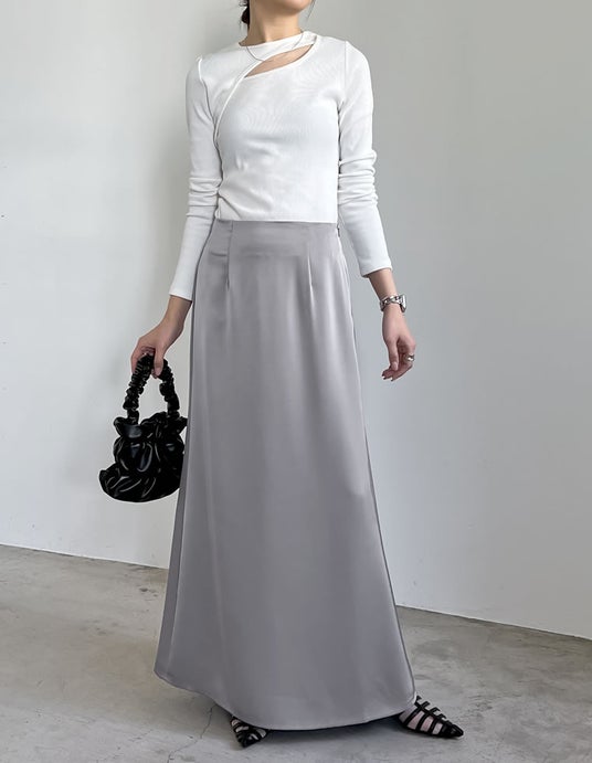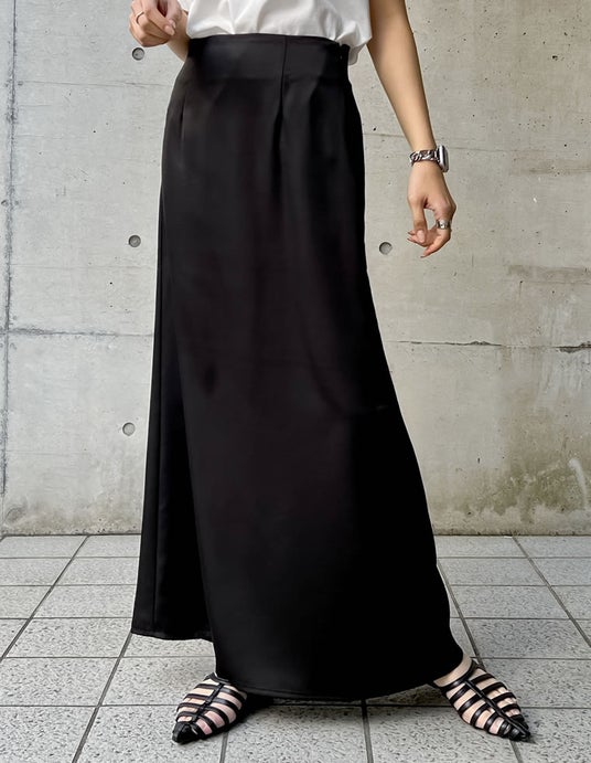 程良く艶がかったサテンのような、なめらかな風合いが魅力のナロースカート。