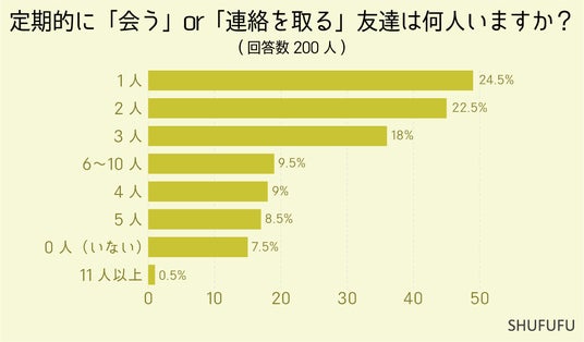 定期的に「会う」or「連絡を取る」友達は何人いますか?