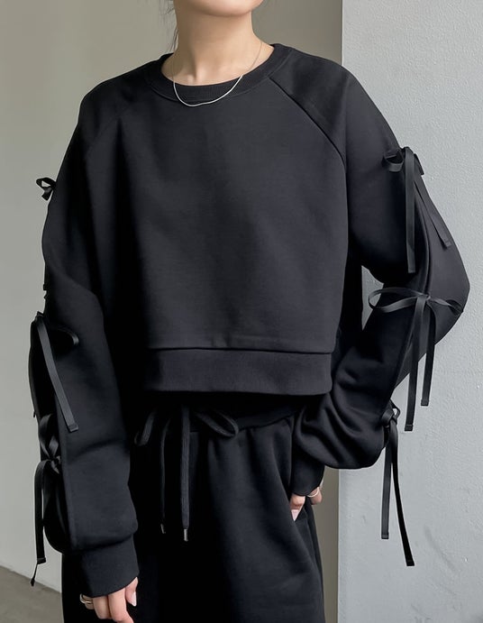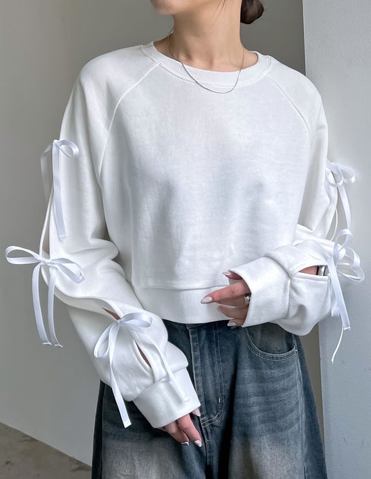 商品名:裏毛袖リボンクロップドプルオーバー