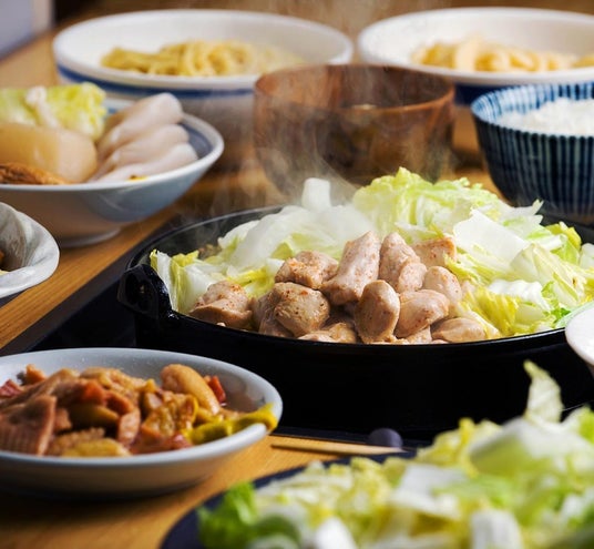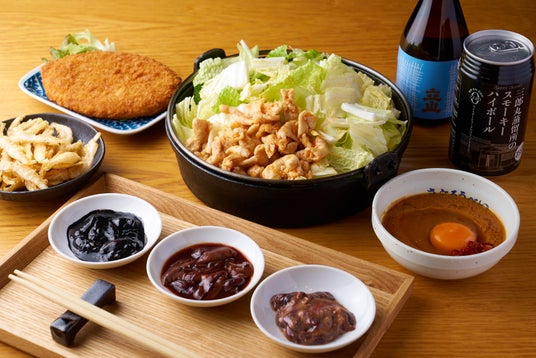 富山のソウルフードとも言われる”もつ煮込みうどん”をイメージし、さぶろうべい名物の白菜鍋で表現しました。特製ごま味噌ダレでお召し上がりください。
