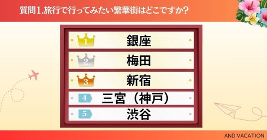 そこで、旅行で行きたい憧れの繁華街について、アンケートで聞き取り調査をしました。ぜひ、チェックしてみてください!
